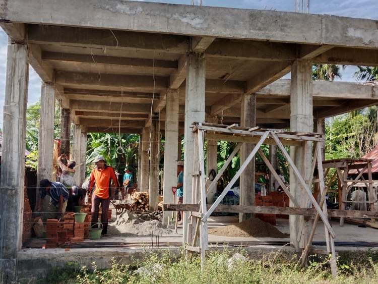 “Saat ini fokus pekerjaan meliputi pemasangan batu bata, plaster dinding, pemasangan jendela, dan pengerjaan tiang lantai dua. Seluruh proses melibatkan warga setempat.” Ungkap Kepala Desa Pahlawan Ratu, Kamarsyah, Sabtu (7/6/2025).