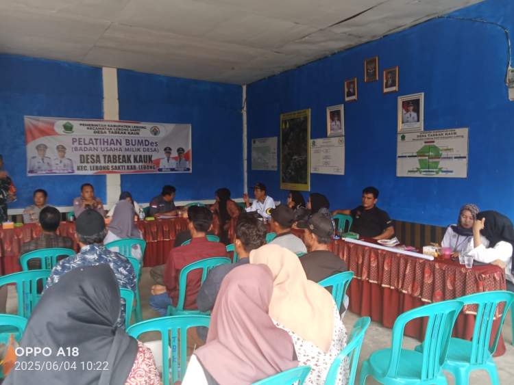 Lebong, mediabengkulu.co – Pemerintah Desa Tabeak Kauk, Kecamatan Lebong Sakti, Kabupaten Lebong, menggelar pelatihan pengelolaan Badan Usaha Milik Desa atau BUMDes pada Rabu (4/6/2025).