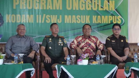 Program Unggulan Kodam II/Sriwijaya Masuk Kampus, Kegiatan berlangsung di Aula Universitas Ratu Samban pada Kamis (18/1/2024). (foto : dok)
