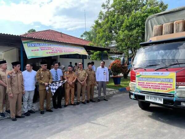 Pendistribusian bantuan pangan beras dilepas langsung oleh Bupati Rejang Lebong, Syamsul Efendi.