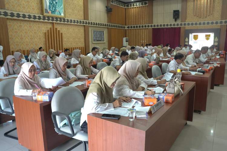 Giliran pegawai Biro Pemerintahan dan Kesra Setda Provinsi Bengkulu mengikuti tes pemahaman tugas pokok dan fungsi di Gedung Pola Kantor Gubernur, Rabu (9/7/2025).