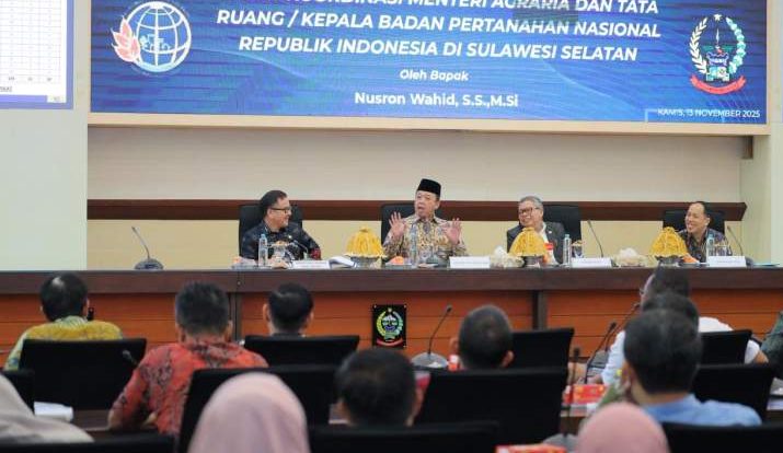 Makassar, mediabengkulu.co – Menteri ATR/BPN, Nusron Wahid, menggelar rapat koordinasi dengan seluruh kepala daerah se-Sulawesi Selatan di Kantor Gubernur Sulsel, Kamis (13/11/2025).