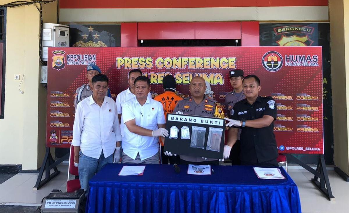Terduga tersangka beserta barang bukti, Rabu (7/2/2024), (Foto: Soni/mediabengkulu.co)