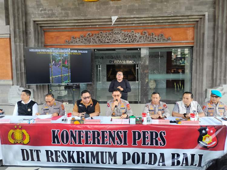 Menyampaikan sesuai hasil penyidikan, pemeriksaan 24 orang saksi, termasuk rekaman CCTV di seputaran TKP dan barang bukti yang ada Polda Bali menetapkan 14 orang tersangka diantaranya 10 orang dewasa dan 4 orang anak-anak.