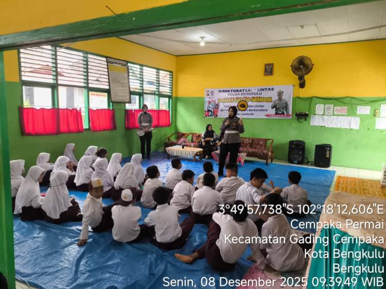Bengkulu, mediabengkulu.co – Ditlantas Polda Bengkulu melaksanakan kegiatan Police Go To School di SDN 99 Kota Bengkulu pada Senin (8/12/2025).