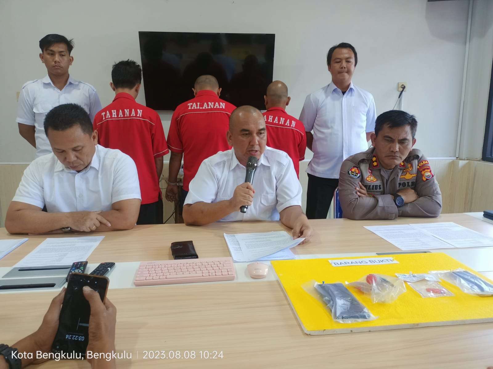 Wadir Resnarkoba Polda Bengkulu AKBP Tonny Kurniawan, S.Ik., saat press conference menyampaikan, DY berhasil ditangkap pihaknya pada hari kamis tanggal 03 Agustus 2023 sekira pukul 23.00 wib di toko milik tersangka DY yang berada disekitaran kelurahan Kampung Kelawi Kota Bengkulu.