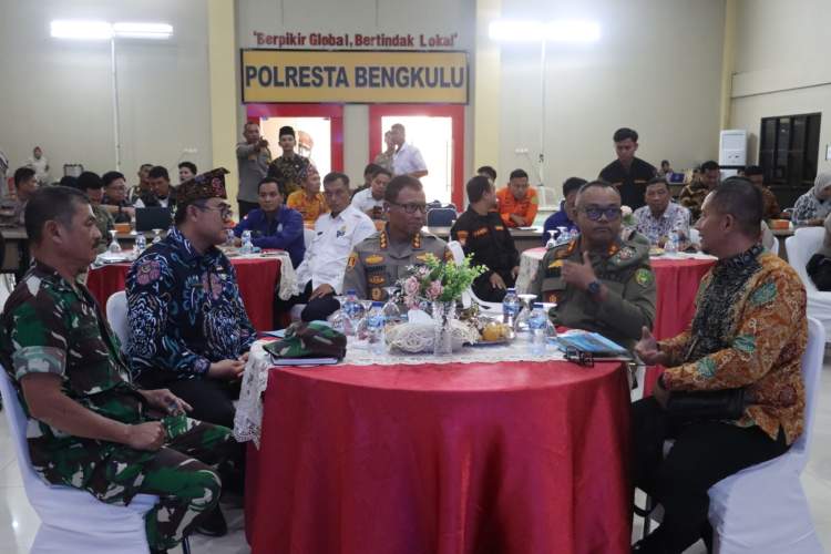 Kapolresta Bengkulu memimpin langsung rapat yang dihadiri unsur TNI, pemerintah daerah, Dinas Perhubungan, Satpol PP, BPBD, Dinas Kesehatan, pengelola tempat ibadah, serta instansi terkait lainnya.