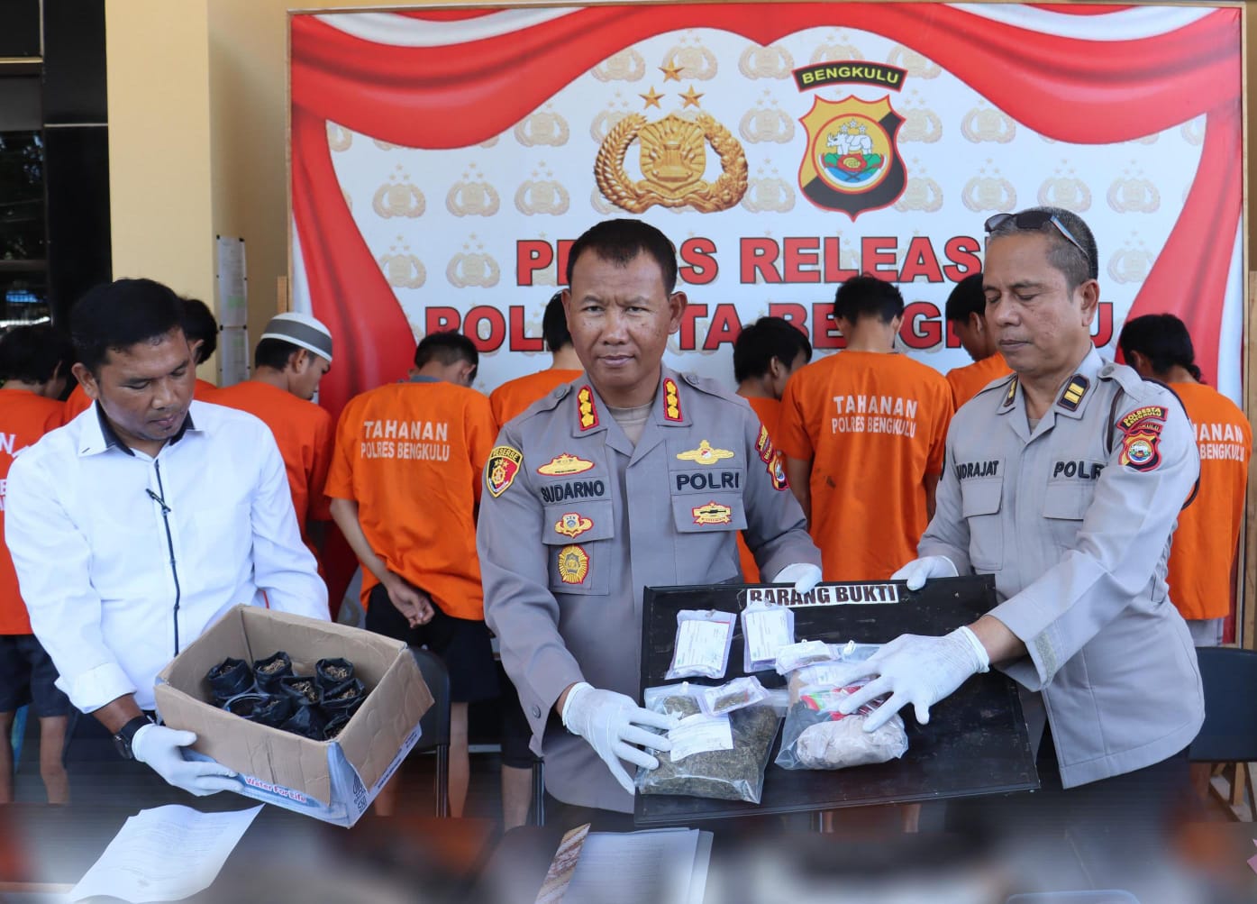 Kegiatan ini dipimpin langsung oleh Kapolresta Bengkulu, Kombes Pol Sudarno. Dalam press release tersebut beberapa kasus yang berhasil diungkap selama bulan April 2025.