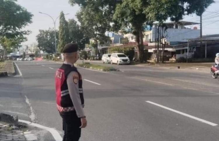 Personel Polri hadir sejak pagi untuk memastikan arus lalu lintas lancar serta memberi rasa aman dan nyaman bagi masyarakat.