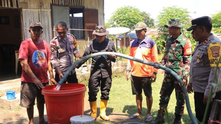 Menyikapi kondisi itu, jajaran Polsek Mauponggo turun langsung mendistribusikan bantuan air bersih bagi masyarakat yang terdampak.