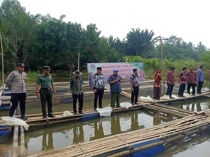 Acara dilanjutkan dengan pelepasan bibit ikan lele sebanyak 20.000 ekor ke keramba apung Desa Lawang Agung.