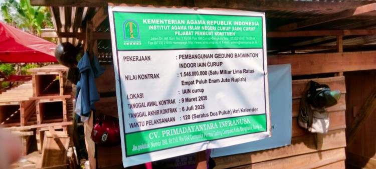 Rejang Lebong, mediabengkulu.id – Proyek pembangunan gedung Badminton Indoor IAIN Curup kembali menuai sorotan.