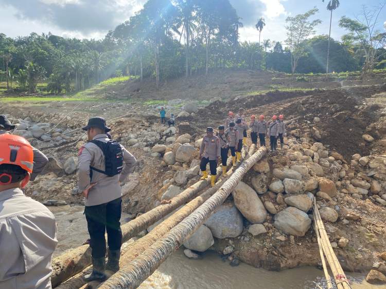 Kabagpenum Ropenmas Divhumas Polri Kombes Pol Erdi A. Chaniago menegaskan, pembangunan jembatan darurat ini merupakan wujud nyata kehadiran Polri di tengah masyarakat.