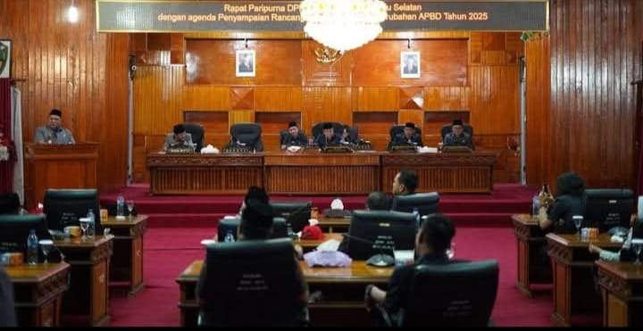 Rapat Paripurna DPRD Bengkulu selatan dengan agenda Penyampaian Rancangan Kebijakan Umum Anggaran dan Prioritas Plafon Anggaran Sementara (KUA-PPAS) Perubahan APBD Tahun Anggaran 2025, Senin (1/7/2025). (foto: dok)