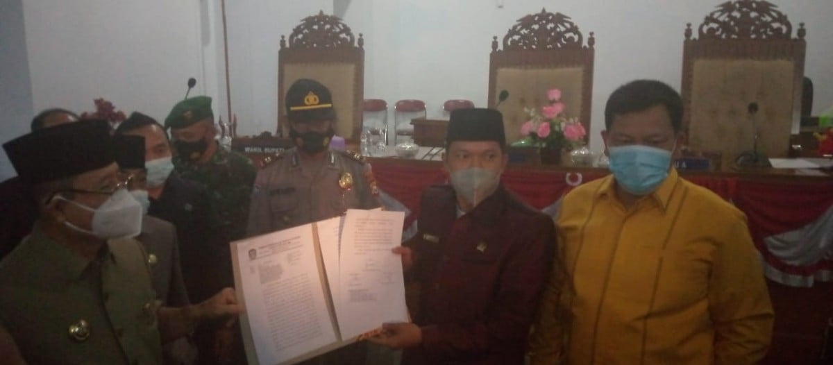 Rapat Paripurna dilaksanakan mendaklanjuti adanya Surat Mahkamah Konstitusi Republik Indonesia Nomor 165/PAN.MK/01/2021 Tanggal 20 Januari 2021 hal keterangan perkara PHP-GUB/Kab/Kot Tahun 2021 yang di registrasi di Mahkamah Konstitusi dan Surat Komisi Pemilihan Umum Republik Indonesia Nomor 60/PL.02.7-SD/03/KPU/2021 tanggal 20 Januari 2021 hal Penetapan Pasangan Calon Terpilih Pemilihan Serentak Tahun 2020.