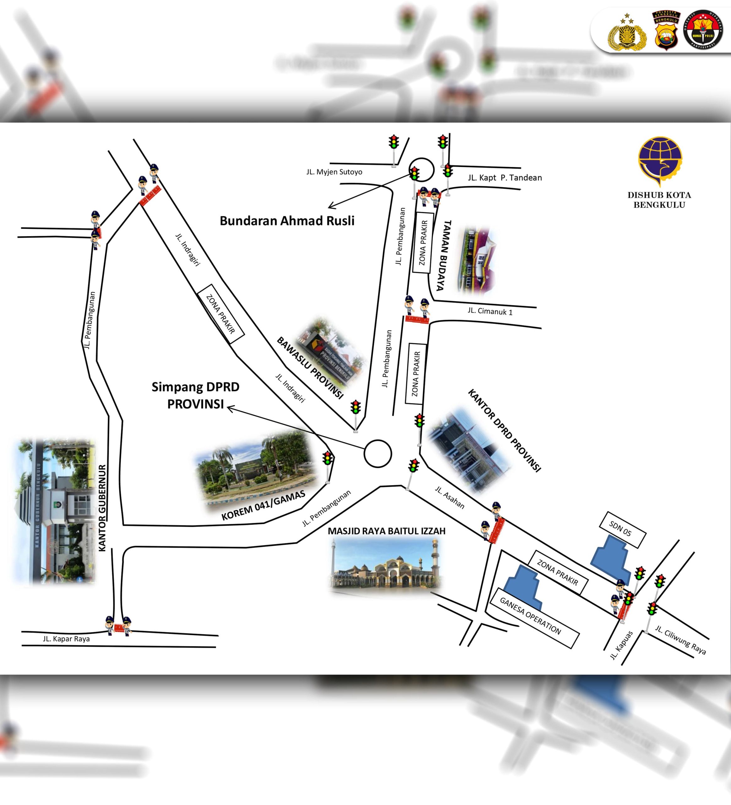Kasi Humas Polresta Bengkulu, IPTU Endang Sudrajat, menyampaikan titik jalan yang akan ditutup. Meliputi, Simpang empat lampu merah, Jalan Mayjen Sutoyo, Simpang Cimanuk, Simpang Jalan Asahan. Simpang empat lampu merah Jalan Kapuas, Simpang Jalan Kampar Raya, Simpang Jalan Pembangunan dan Jalan Indragiri.