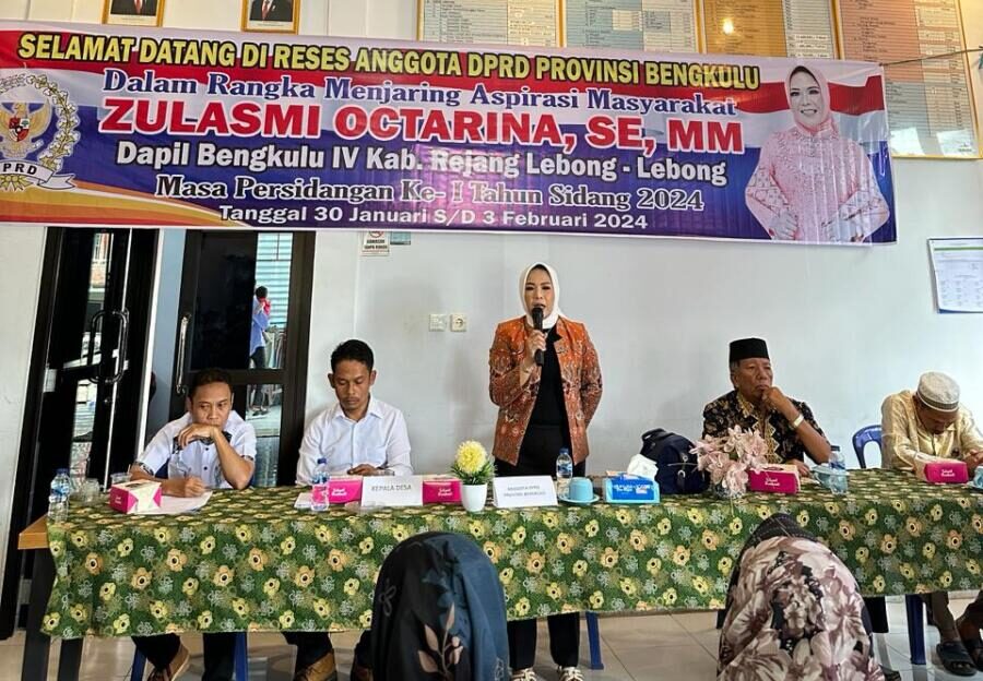 Anggota DPRD Provinsi Bengkulu Zulasmi Octarina, SE, Mm menjaring aspirasi masyarakat di Desa Suka Marga Kecamatan Curup Selatan Kabupaten Rejang Lebong, Selasa (30/1/2024) kemarin.
