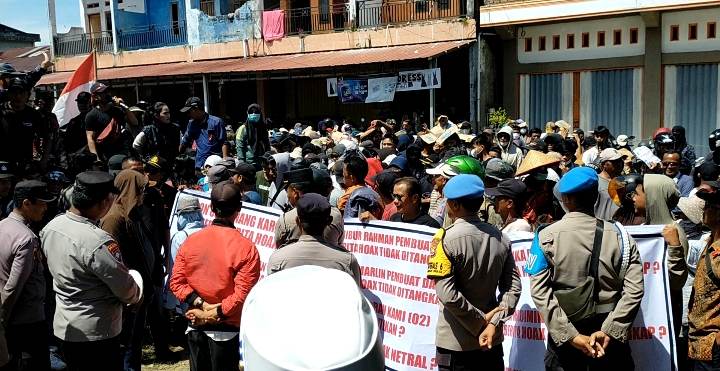 Dalam orasinya, koordinator aksi, Herman Lufti, menegaskan bahwa pembatalan laporan tanpa penjelasan memadai menimbulkan kekecewaan di kalangan pendukung paslon 02.