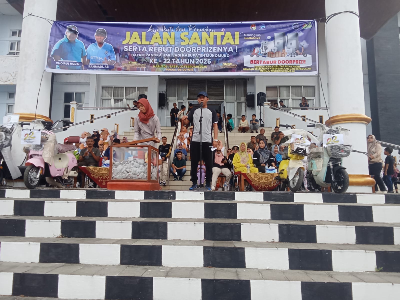 Mukomuko, mediabengkulu.co – Ribuan masyarakat mengikuti jalan jalan santai dalam rangka memperingati HUT ke-22 Kabupaten Mukomuko, dengan tiket undian gratis, Sabtu (22/2/2025).