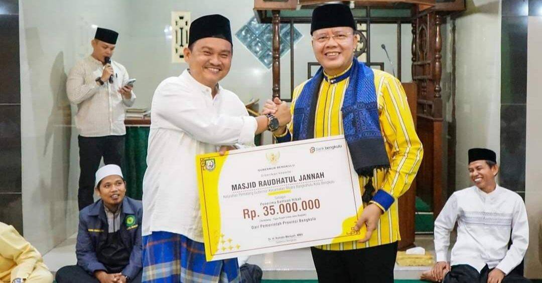 Gubernur Bengkulu Rohidin Mersyah, turut memperingati Isra’ mi’raj Nabi Muhammad SAW dengan memberikan bantuan pembangunan masjid di Masjid Raudhatul Jannah, Jumat (9/2/2024). (foto:dok/ist)