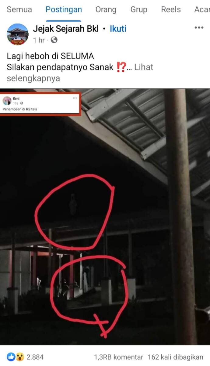 Postingan itu banyak dibagikan oleh para netizen, seperti akun facebook milik @Erni. “Penampakan di RSUD Tais,” tulis Erni dalam keterangan foto itu.