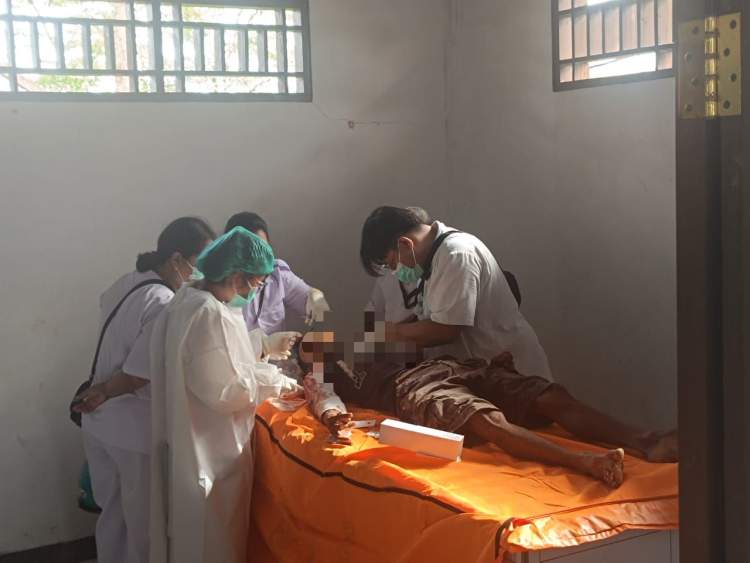 Berdasarkan hasil pemeriksaan awal, korban mengalami sejumlah luka senjata tajam pada leher, wajah, lengan kanan, dan luka sobek di jari telunjuk kiri. Identitas korban diketahui beralamat di Permukiman Jalur 3 dan bekerja sebagai buruh swasta.