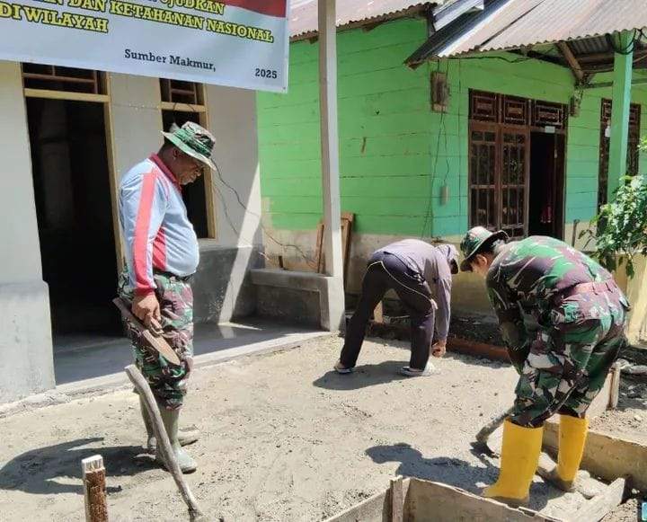 Mukomuko, mediabengkulu.co – Satgas TMMD Reguler ke-125 Kodim 0428/Mukomuko melanjutkan pengecoran teras depan Rumah Tidak Layak Huni di Desa Sumber Makmur SP 8, Kecamatan Lubuk Pinang, Sabtu (2/8/2025).