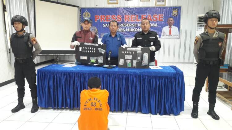 Mukomuko, mediabengkulu.co – Satuan Reserse Narkoba Polres Mukomuko mengadakan press release pengungkapan kasus tindak pidana penyalahgunaan narkotika golongan satu jenis sabu-sabu.