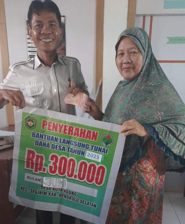 Bengkulu Selatan, mediabengkulu.co – Pemerintah Desa Kota Agung, Kecamatan Seginim, Kabupaten Bengkulu Selatan, menyalurkan BLT-DD tahap dua kepada masyarakat penerima manfaat, pada Rabu (4/6/2025) lalu.