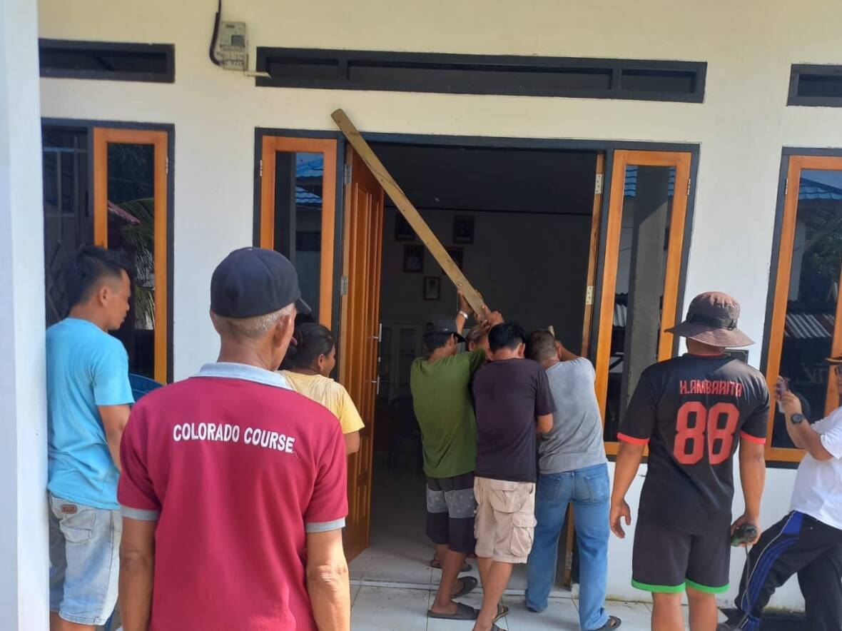 Saat membuka segel Kantor Desa Dusun Baru (foto : istimewa)