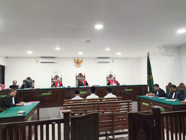 Jaksa menghadirkan tiga terdakwa dalam perkara tersebut, yakni mantan Direktur Utama Perumda Tirta Hidayah Samsu Bahari, mantan Kepala Bagian Umum Yanwar Pribadi, serta mantan Kasubag Penggantian Water Meter Eki H.