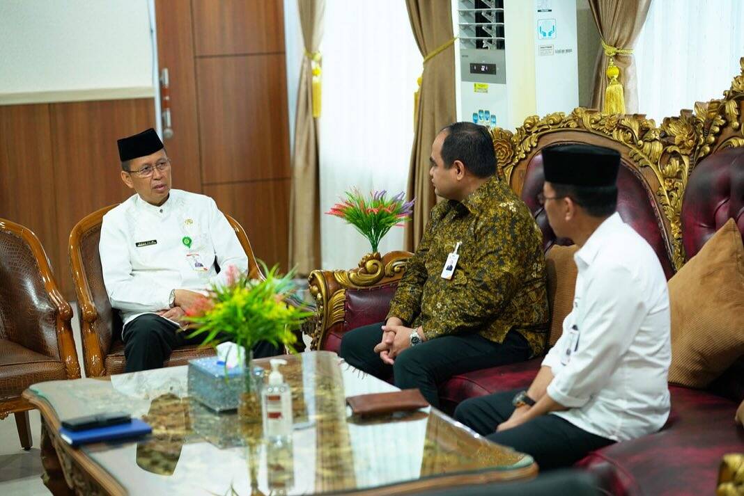 Sekretaris Daerah Isnan Fajri menyambut kedatangan Beni Marjono dengan penuh antusiasme dan memberikan ucapan selamat atas jabatan barunya.