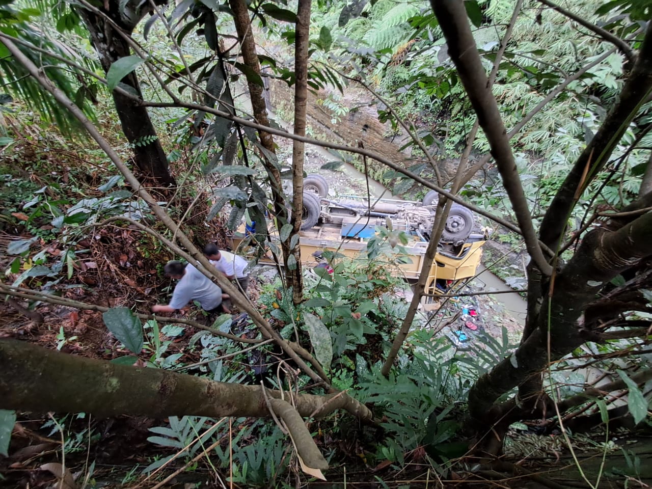 Kendaraan roda enam bernomor polisi BG 8981 HO dengan muatan semen yang ia kendarai masuk ke dalam jurang sedalam 8 meter.
