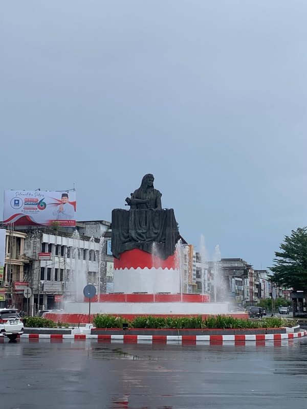 Kini, Bundaran Fatmawati tampil lebih menawan dengan nuansa merah putih, melambangkan Kota Bengkulu sebagai bumi merah putih.
