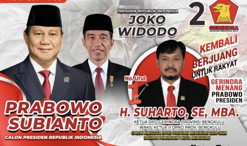 “Atas nama DPD Partai Gerindra Provinsi Bengkulu, kami mengucapkan terima kasih atas dukungan dan kepercayaan yang diberikan masyarakat kepada Ketum yang sekaligus Capres kita Pak Prabowo Subianto, kemenangan yang diraih ini merupakan wujud dari kepercayaan masyarakat yang telah memilih dan memberikan doa nya, mari bersama-sama kita jaga dan kawal kemenangan hingga final nanti,” ucap Suharto, Jumat (16/02/2024).