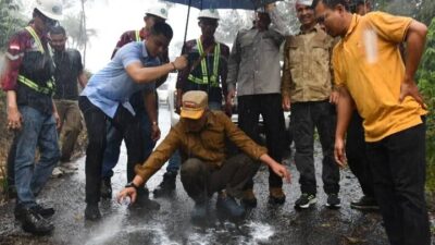 Rejang Lebong, mediabengkulu.co – Dengan diguyur hujan deras, Bupati Rejang Lebong, Syamsul Effendi, menandai titik nol pembangunan Jalan Curup Utara…