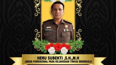 Bengkulu, mediabengkulu.co – Kabar duka datang dari Kejaksaan Tinggi Bengkulu. Heru Subekti, Jaksa Fungsional yang dikenal humanis dan ramah, meninggal…