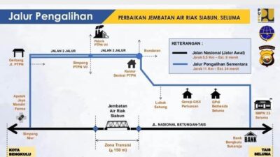Seluma, mediabengkulu.co – Jalan lintas Bengkulu – Manna, tepatnya di Desa Padang Pelawi, Kecamatan Sukaraja, Kabupaten Seluma, bakal ditutup sementara…