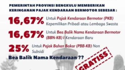 Bengkulu, mediabengkulu.co – Kabar gembira bagi pemilik kendaraan bermotor di Provinsi Bengkulu. Gubernur Bengkulu Helmi Hasan resmi menetapkan pemberian keringanan…