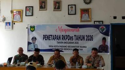 Bengkulu Selatan, mediabengkulu.co – Pemerintah Desa Kota Padang, Kecamatan Manna, menggelar Musyawarah Desa untuk menetapkan Rencana Kerja Pemerintah Desa Tahun…