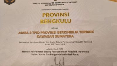 Bengkulu, mediabengkulu.co – Pemerintah Provinsi Bengkulu kembali mencatatkan prestasi di tingkat nasional. Pada ajang Tim Pengendalian Inflasi Daerah (TPID) Award…