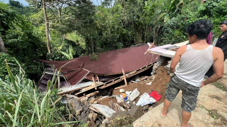 “Tanah di samping rumah tiba-tiba bergeser dari tebing dan langsung menghantam bangunan,” kata Samsul Bahri, Sabtu siang.