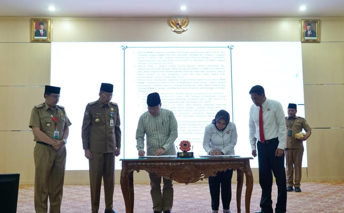 Bengkulu, mediabengkulu.co – Gubernur Rohidin Mersyah melakukan Penandatanganan Perjanjian Kerja Sama Antara Pemprov Bengkulu dengan Kejaksaan Tinggi Bengkulu Tentang Penanganan Hukum Bidang Perdata dan Tata Usaha Negara di Balai Raya Semarak Bengkulu, Senin (22/01/2024).