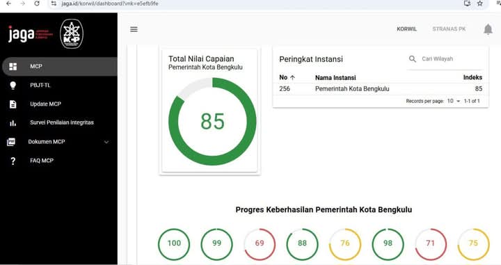 Nilai MCP Kota Bengkulu ini merupakan yang tertinggi se-Provinsi Bengkulu dan juga masuk kategori salah satu terbesar dari seluruh daerah di Indonesia.