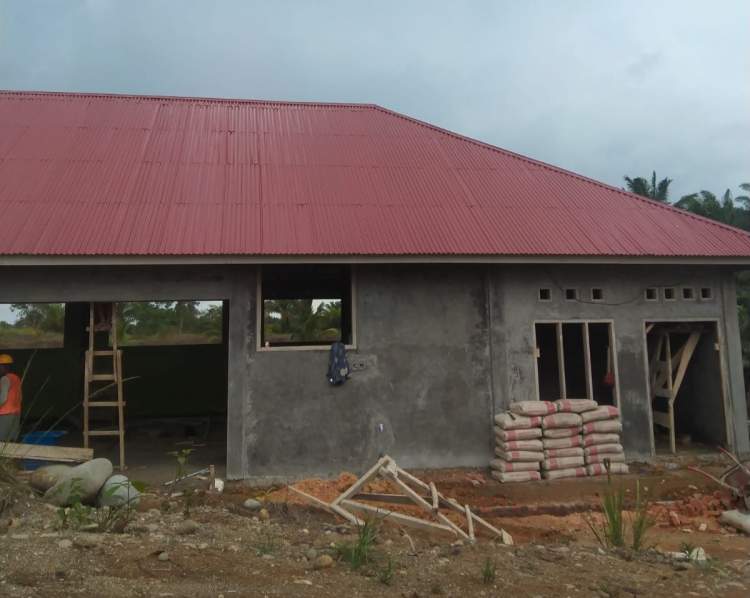 Kepala Desa Agung Jaya, Hartono, menyebut pembangunan sudah mencapai 75 persen.