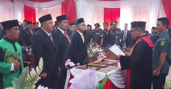 Pelantikan dan pengambilan sumpah janji jabatan unsur pimpinan DPRD dipimpin langsung oleh Ketua Pengadilan Negeri Bengkulu Utara, Senin (28/10/2024).