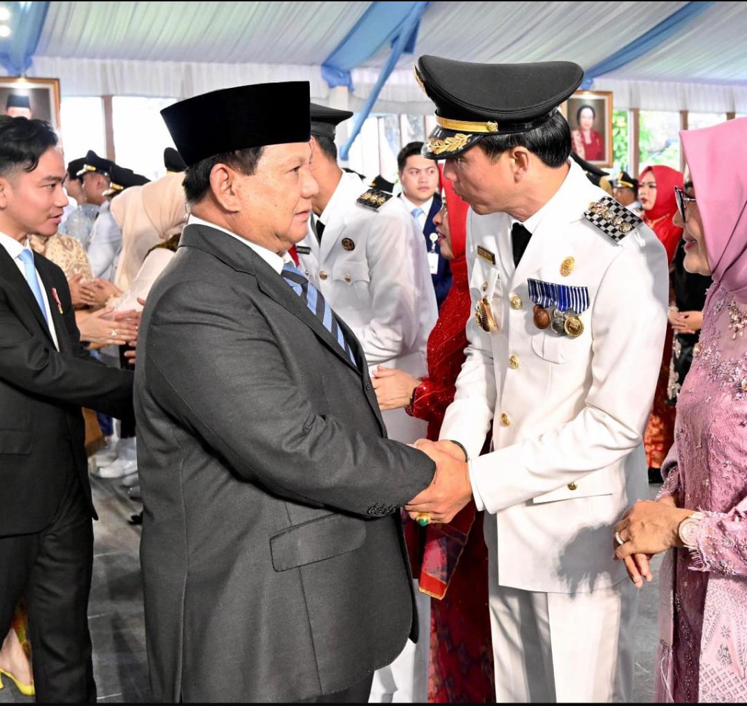 Jakarta, mediabengkulu.co – Presiden Republik Indonesia, Prabowo Subianto didampingi Wakil Presiden Gibran Rakabuming Raka berkeliling menyalami satu per satu ratusan kepala daerah terpilih usai dilantik di Istana Kepresidenan Jakarta, Kamis (20/2/2025).