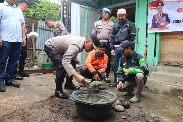 Usai peresmian, Kapolda menuju lokasi kedua di Kelurahan Sukamerindu untuk memulai pembangunan rumah baru bagi Yudi Firmansyah (21).